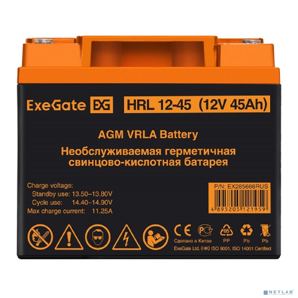 Exegate EX285666RUS Аккумуляторная батарея ExeGate HRL 12-45 (12V 45Ah, под болт М6)