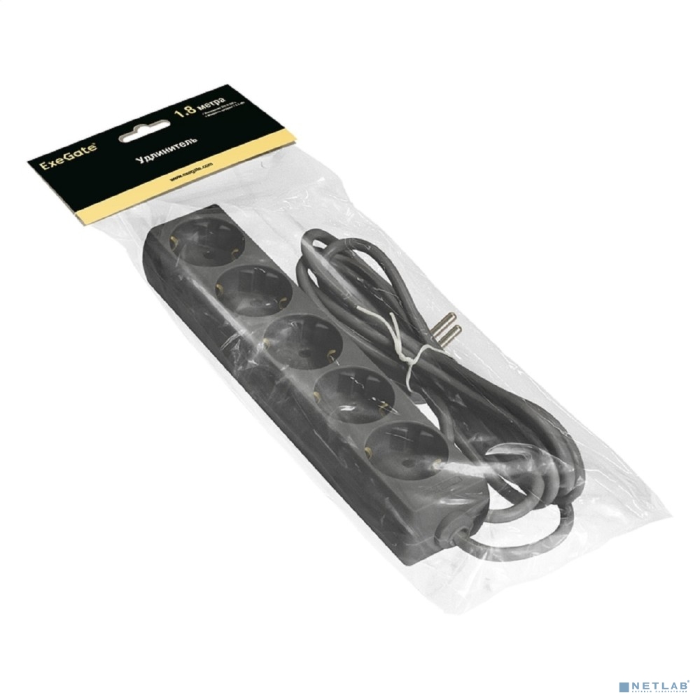 Exegate EX285819RUS Удлинитель ExeGate ECE-5-1.8B (5 евророзетки с заземлением, 1.8м, черный)
