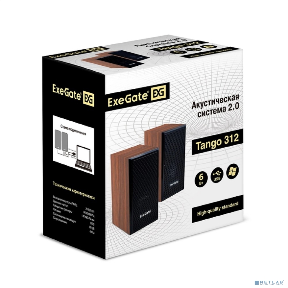 Exegate EX287058RUS Акустическая система 2.0 ExeGate Tango 312 (питание USB, 2х3Вт (6 Вт RMS), 80-20000Гц, светлое дерево)