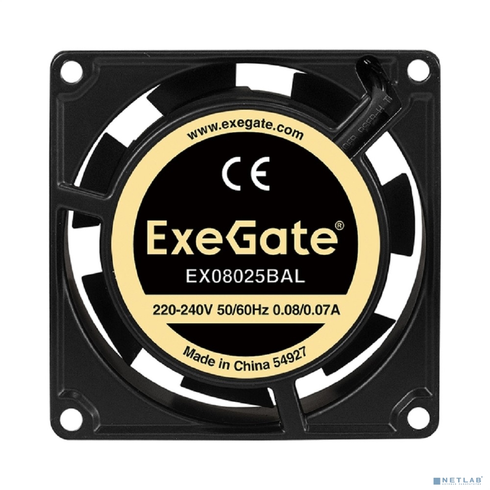 Exegate EX288997RUS Вентилятор 220В ExeGate EX08025BAL (80x80x25 мм, 2-Ball (двойной шарикоподшипник), подводящий провод 30 см, 2600RPM, 32dBA)