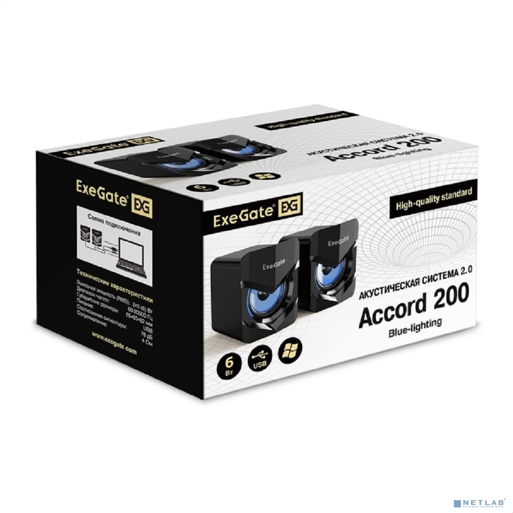 Exegate EX289685RUS Акустическая система 2.0 ExeGate Accord 200 (питание USB, 2х3Вт (6Вт RMS), 60-20000Гц,цвет черный, синяя подсветка)