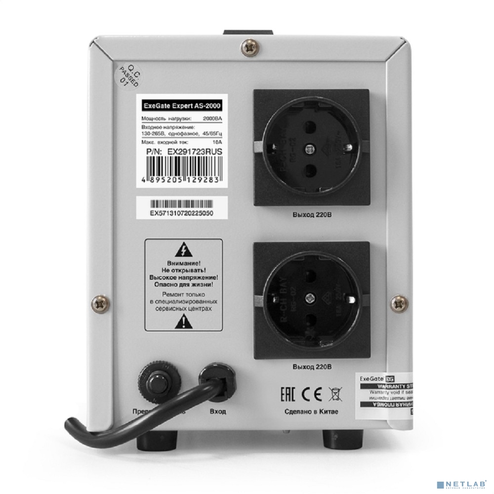 Exegate EX291723RUS Стабилизатор напряжения ExeGate Expert AS-2000 (2000ВА, вход 140...260В, двойная цифр. индикация вход/вых. напряжения, выход 220В±8%, КПД 98%, 5 уровней защиты, задержка, метал. ко