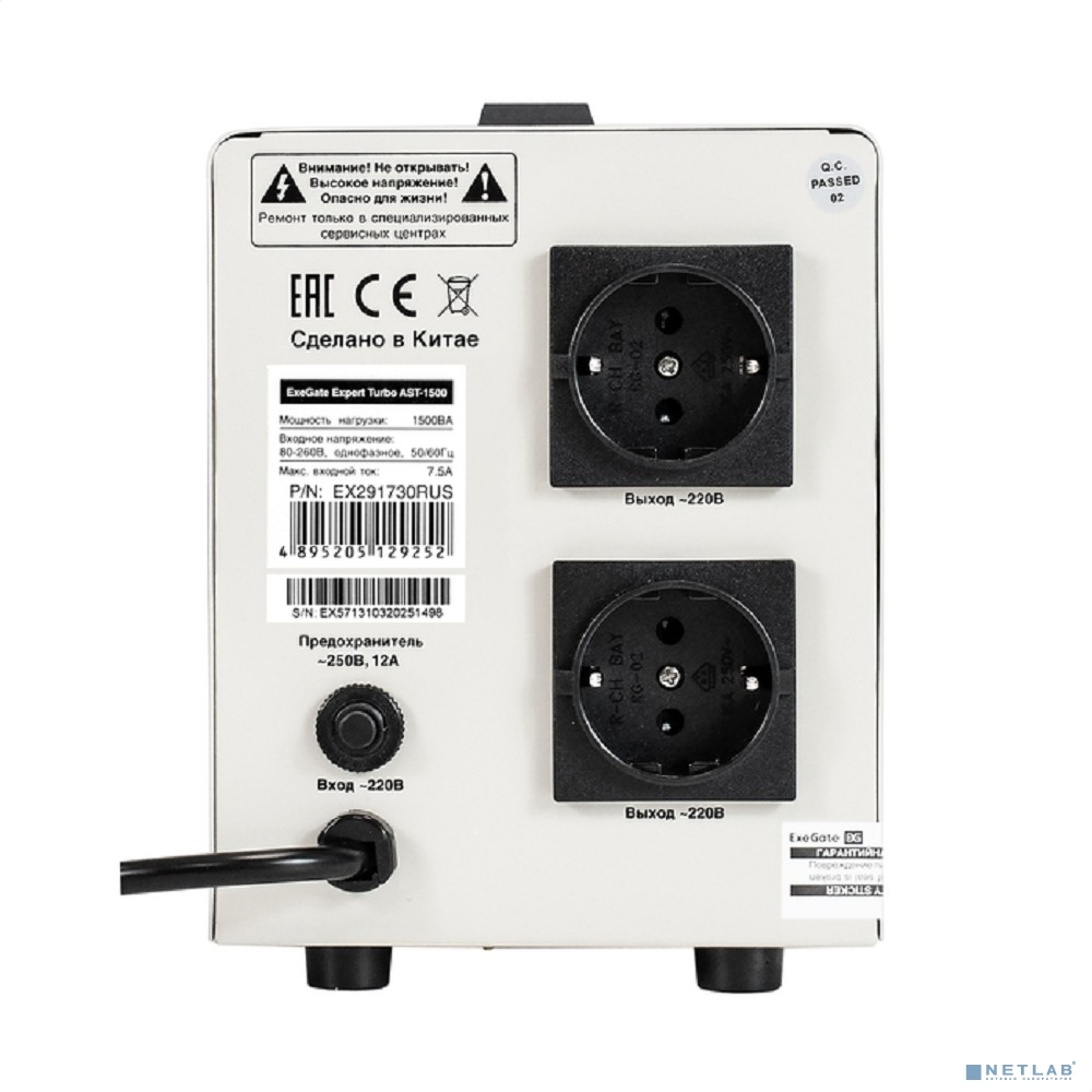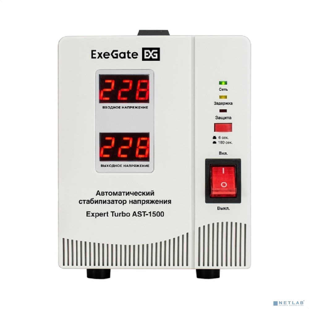 Exegate EX291730RUS Стабилизатор напряжения ExeGate Expert Turbo AST-1500 (1500ВА, вход 80-260В, двойная цифр. индикация вход/вых. напряжения, выход 220В±8%, КПД 98%, 5 уровней защиты, задержка, усиле
