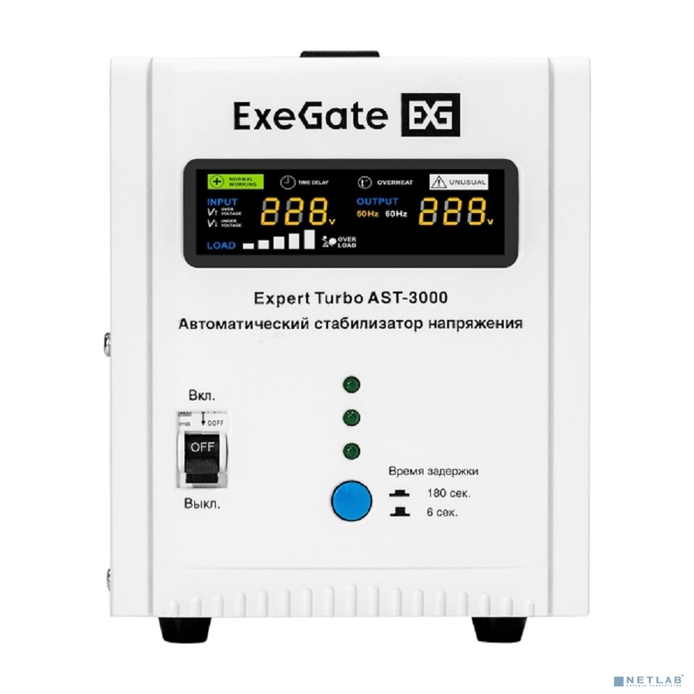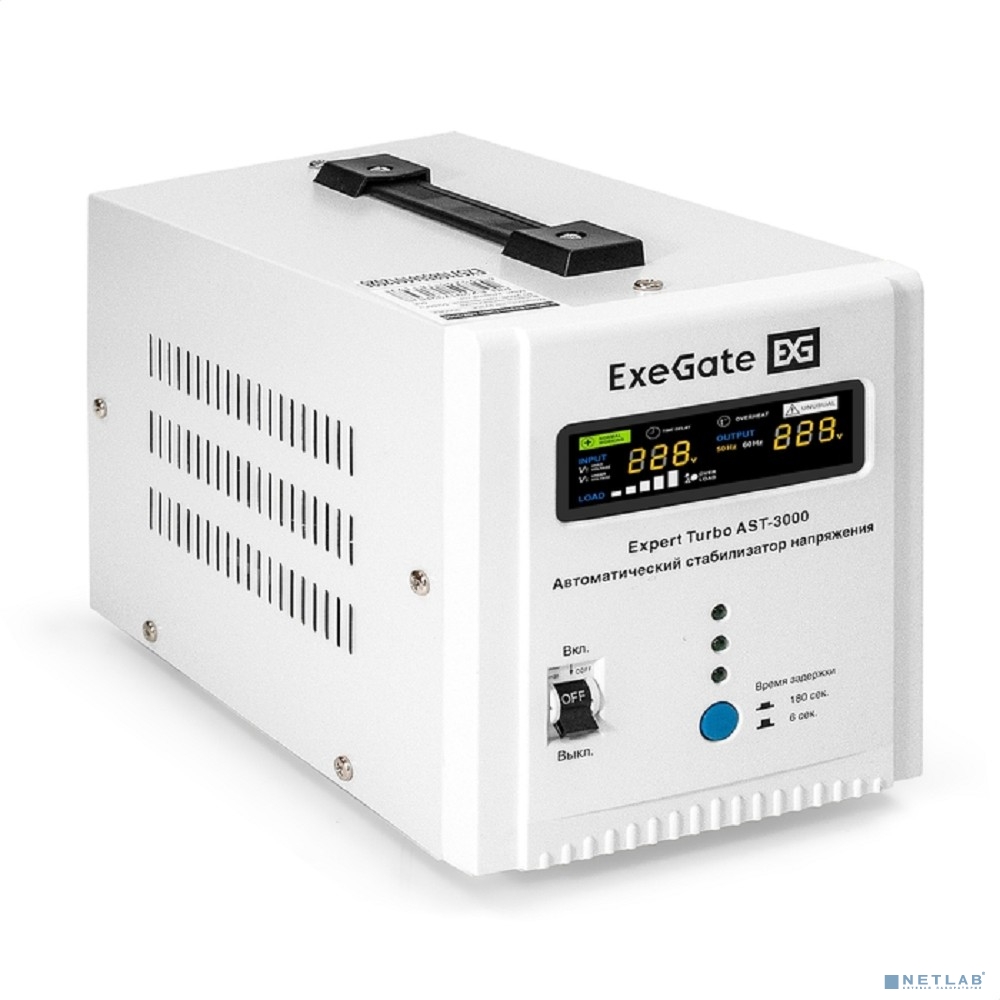 Exegate EX291732RUS Стабилизатор напряжения ExeGate Expert Turbo AST-3000 (3000ВА, вход 80-260В, цветной дисплей, выход 220В±8%, КПД 98%, 5 уровней защиты, метал. корпус, 2*Schuko+ клем.колодка, RTL)