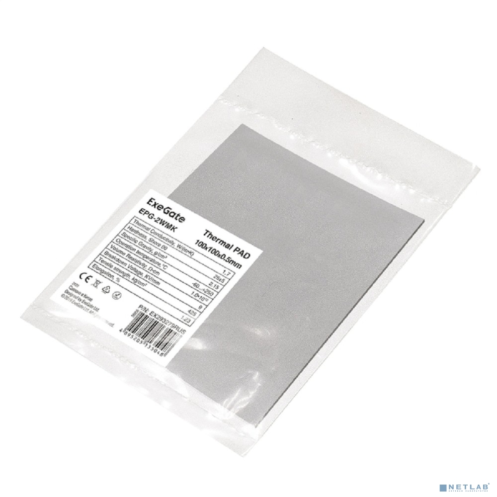 Exegate EX293279RUS Термопрокладка ExeGate EPG-2WMK (100x100x0.5 mm, 1,7 Вт/ (м•К))