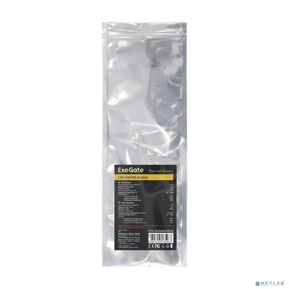Exegate EX293376RUS Термопаста ExeGate ETB-5WMK Bronze (4,9 Вт/(м•К), 5г, шприц с лопаткой)