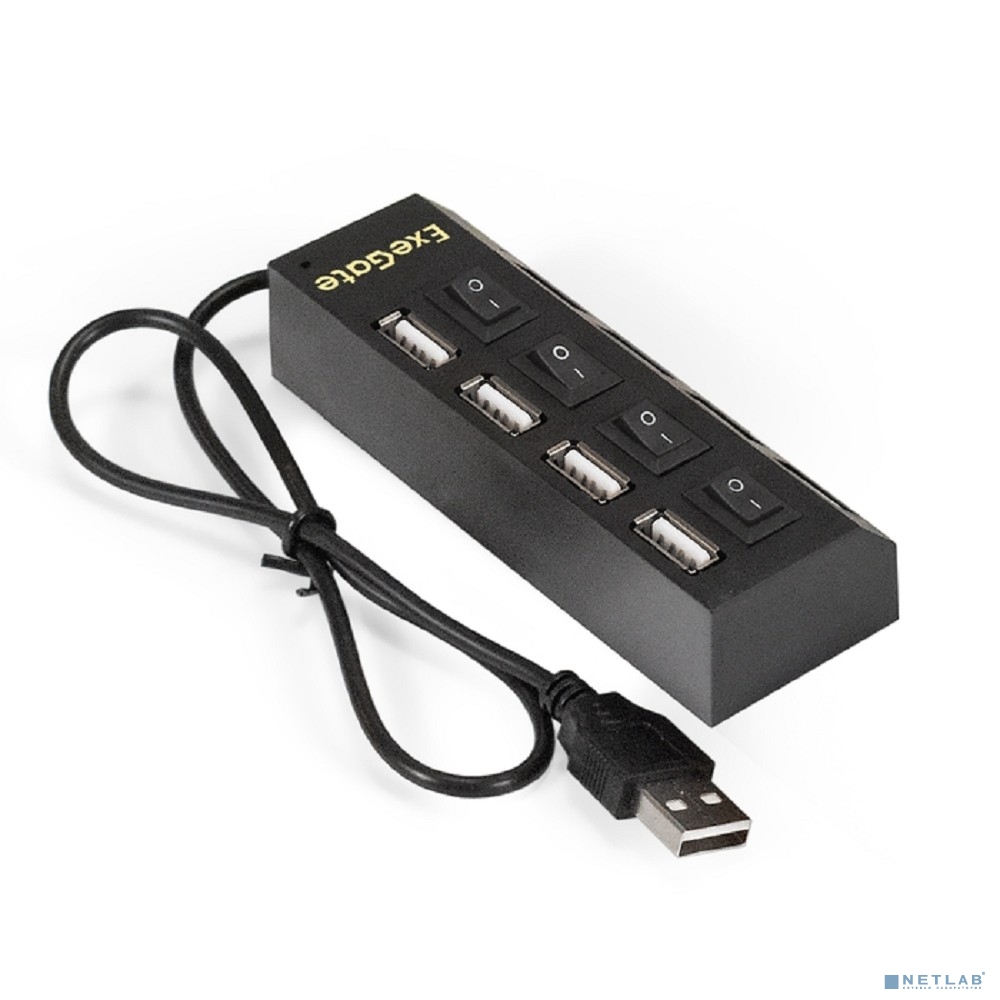 Exegate EX293977RUS USB-Хаб (концентратор) ExeGate DUB-42SW (кабель-адаптер USB2.0 --> 4xUSB2.0, кнопки включения/отключения для каждого порта, Plug&Play, черный)
