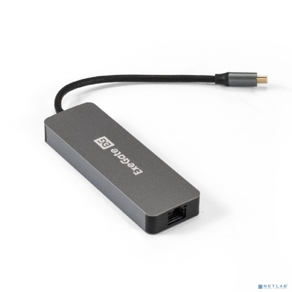 Exegate EX293982RUS Док-станция ExeGate DUB-21C/PD/HL (кабель-адаптер USB Type-C --> 2xUSB3.0 + PD 100W + HDMI 4K@60Hz + Lan RJ45 10/100/1000Mb, Plug&Play, серая)