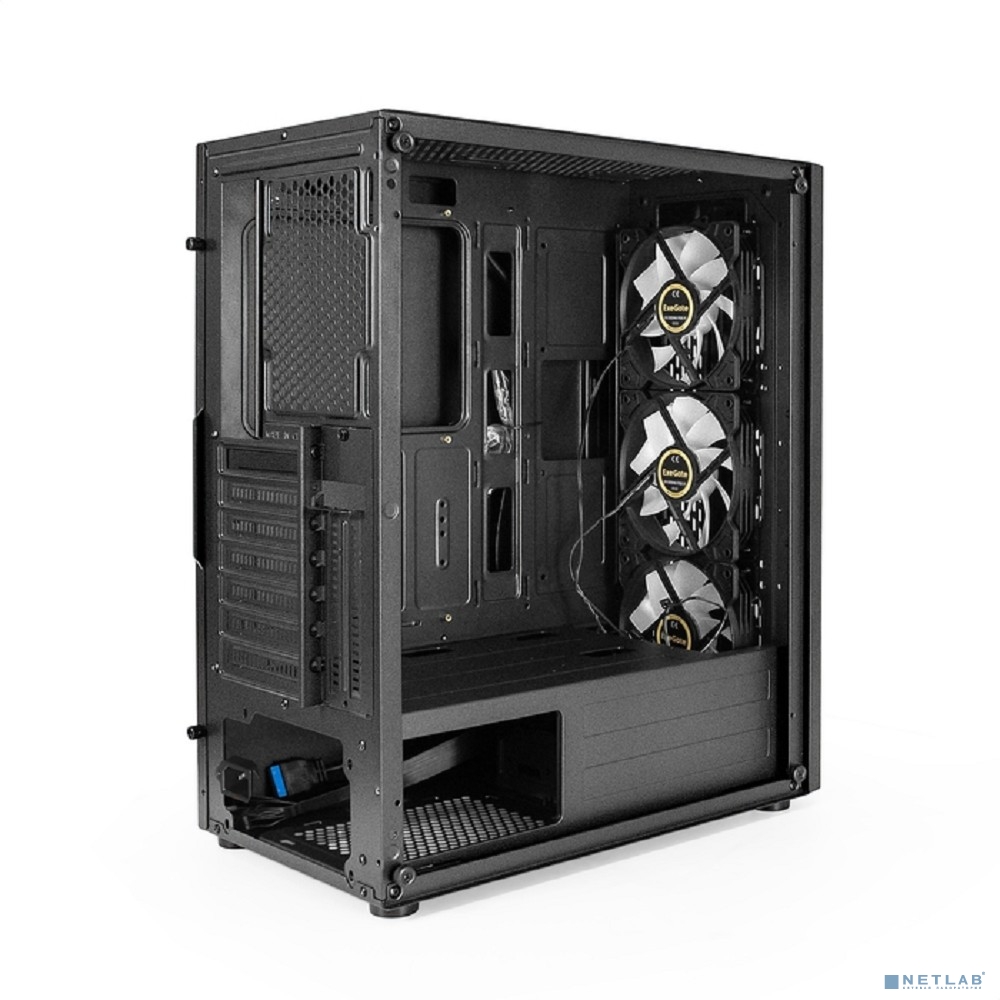 Exegate EX294966RUS Корпус Miditower ExeGate EVO-9205 (ATX, без БП, с окном, 1*USB+1*USB3.0, аудио, 3 вент. 12см с RGB подсветкой)