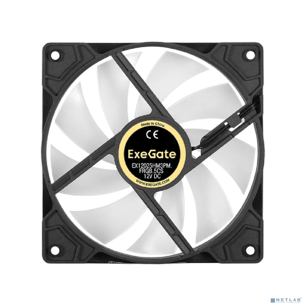 Exegate EX295965RUS Вентилятор 12В DC с подсветкой ExeGate EX12025HM3PM.FRGB.5CS (120x120x25 мм, Hydraulic bearing (гидродинамический), 3pin+Molex, FRGB подсветка, 24dBA)