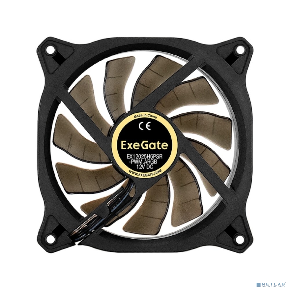 Exegate EX295973RUS Вентилятор 12В DC с подсветкой ExeGate EX12025H6PSR-PWM.ARGB (120x120x25 мм, Hydraulic bearing (гидродинамический), 6pin, 1200RPM, ARGB подсветка, 33dBA)