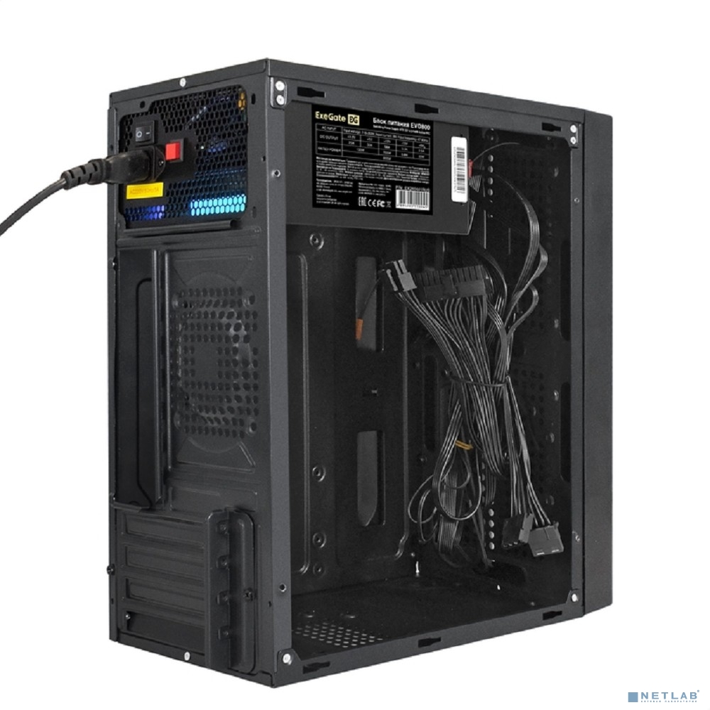 Exegate EX296070RUS Корпус Minitower ExeGate mEVO-9301-EVO800 (mATX, БП EVO800RGB с вент. 12см, с окном, 2*USB+1*USB3.0, HD аудио, черный, с RGB подсветкой)