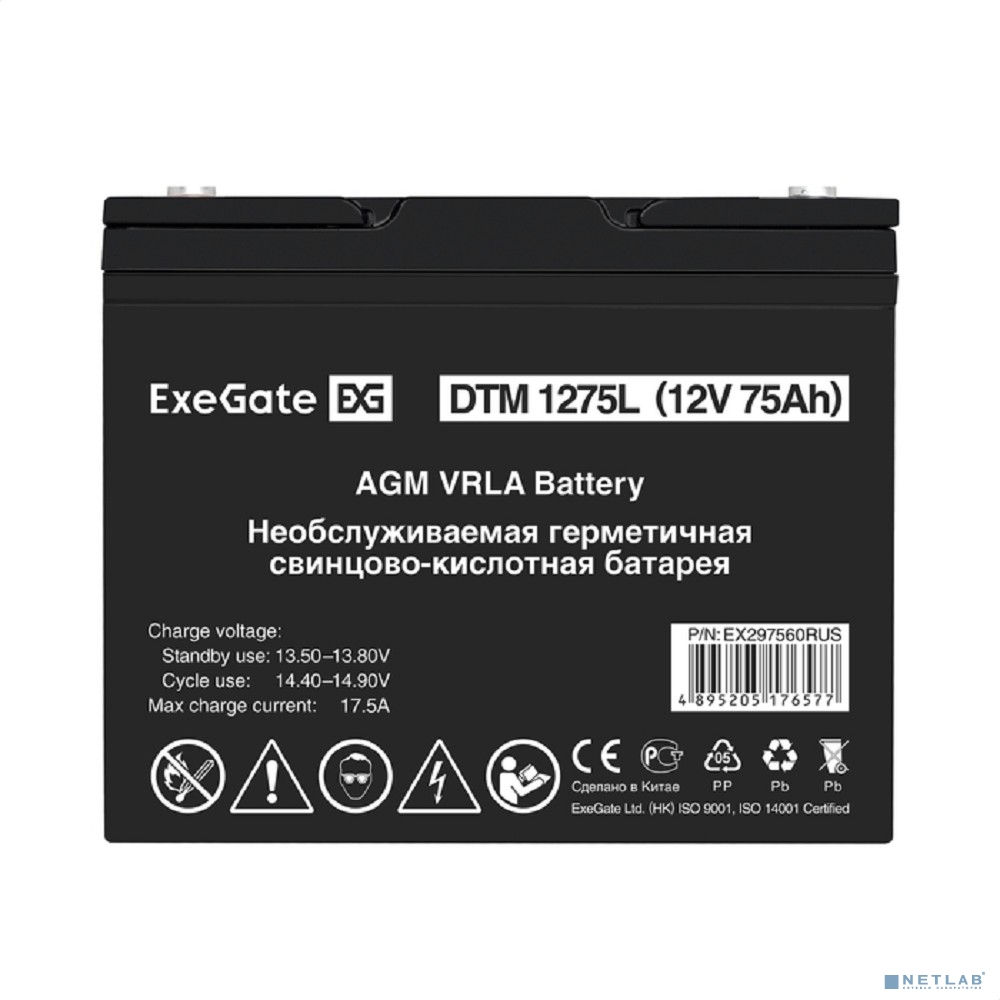 Exegate EX297560RUS Аккумуляторная батарея ExeGate DTM 1275L (12V 75Ah, болт М6) от EXEGATE. Категория: Заменяемые батареи для UPS. Гарантия: 1 год.