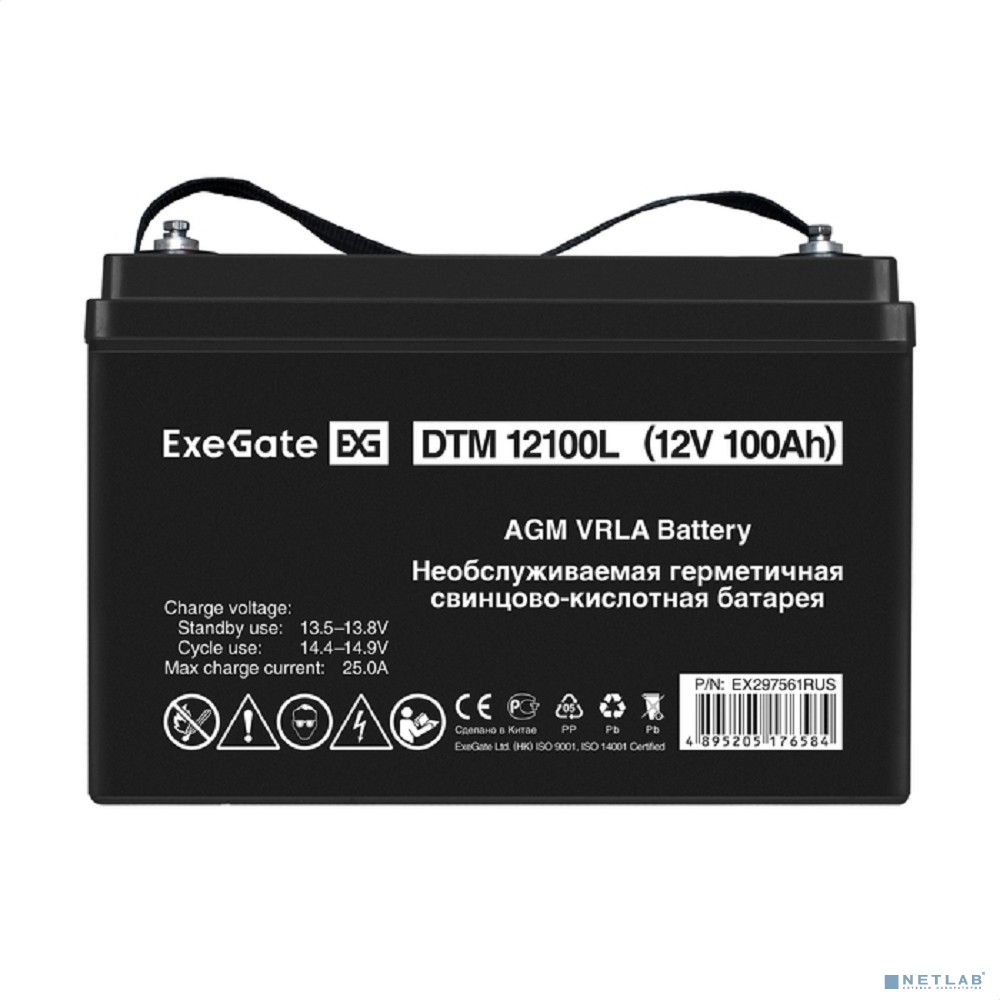 Exegate EX297561RUS Аккумуляторная батарея ExeGate DTM 12100L (12V 100Ah, болт М6)