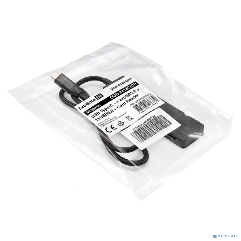 Exegate EX297632RUS Док-станция 4-в-1 ExeGate DUB-2213C/CR (кабель-адаптер USB Type-C --> 2xUSB2.0+ 1xUSB3.0+Card Reader, Plug&Play, черный)
