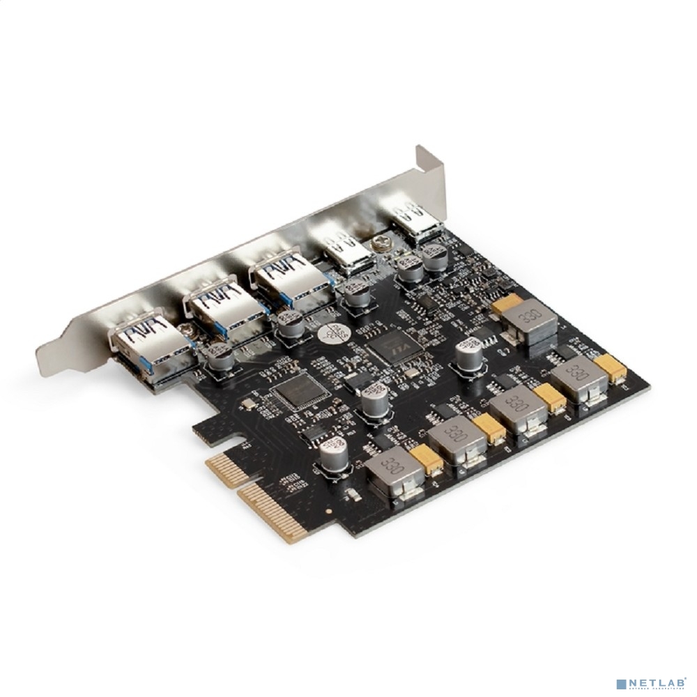 Exegate EX298300RUS Контроллер ExeGate EXE-313V-3A2C (PCI-E x4 v3.0, USB3.2 Gen2 3xType-A + 2xType-C ext., SuperSpeed+ скорость до 10 Гбит/с, разъем доп.питания, Chipset ASM2142+VL820)