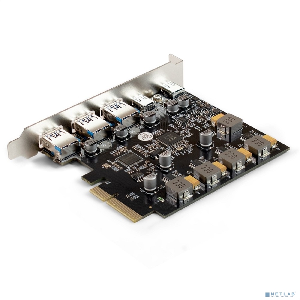 Exegate EX298301RUS Контроллер ExeGate EXE-313-3A2C (PCI-E x4 v3.0, USB3.2 Gen2 3xType-A + 2xType-C ext., SuperSpeed+ скорость до 10 Гбит/с, разъем доп.питания, ASMedia Chipset ASM3142)