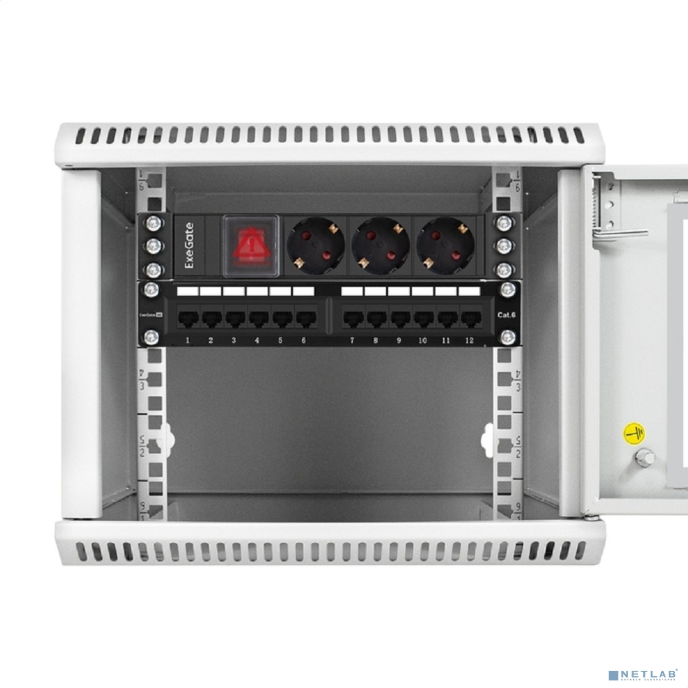 Exegate EX298593RUS Блок розеток 10" с выключателем с подсветкой ExeGate ServerPro PDU-10H305 Al-3S-C14-SW (10", 1U, Алюминий, 3 Schuko, C14, выкл. с подсветкой, (ШхВхГ): 254х45х45 мм, черный, RTL)