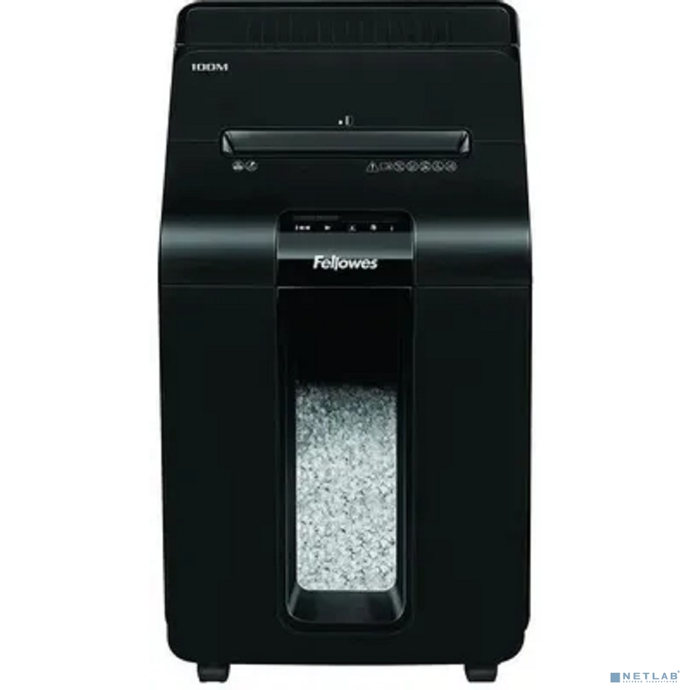 Fellowes Шредер AutoMax 100M FS-4629201 {(секр.P-4)/минирезка/100лист./23лтр./Уничт:скрепки, скобы, пл.карты,автореверс}