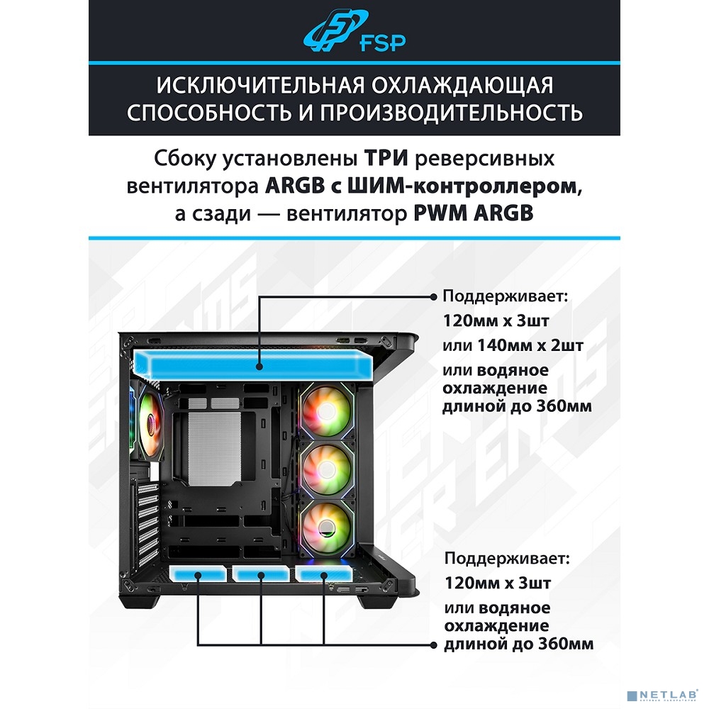 возможность установки системы жидкостного охлаждения, окно на боковой стенке, съемный пылевой фильтр