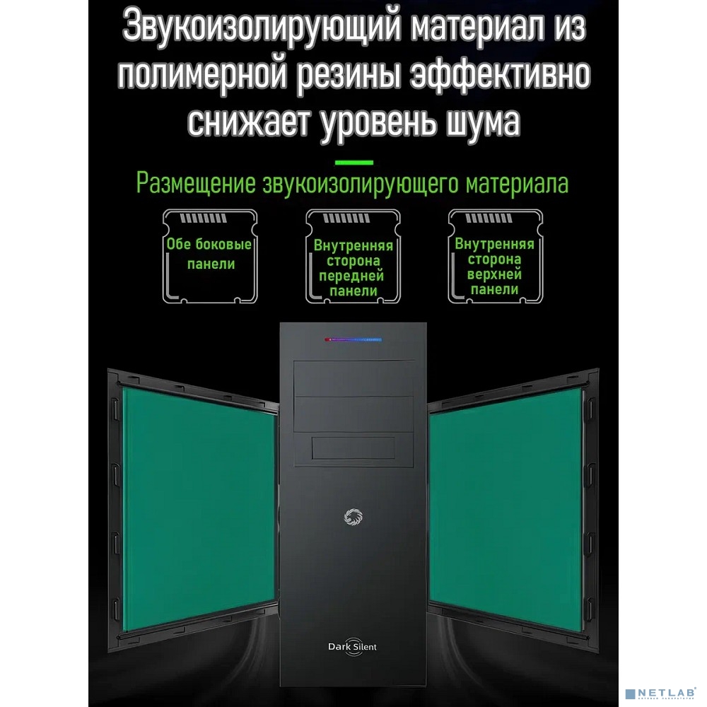 GameMax Корпус Dark Silent MFG.G532X без БП (Midi Tower, ATX, 2*USB3.0, HD Audio, вент. 5*120мм)