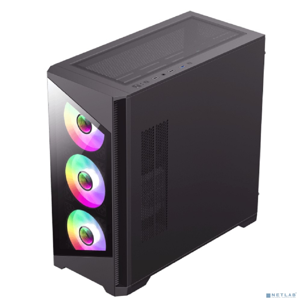 GameMax Корпус Destroyer TGB без БП(mATX, Черн.,USB3.0, Зак.стек., 4*120мм. ARGB , пыл.фильтр)