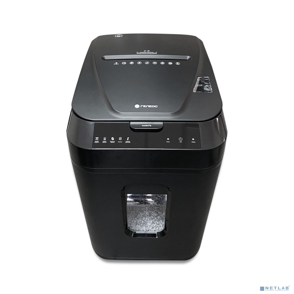 ГЕЛЕОС Уничтожитель документов АП40-4, DIN P-4 (4 ур-нь секр.), фрагмент 3,9х12мм, АВТОПОДАЧА 170 лист (70г/м2), пл.карты/скрепки/скобы, 37 литров