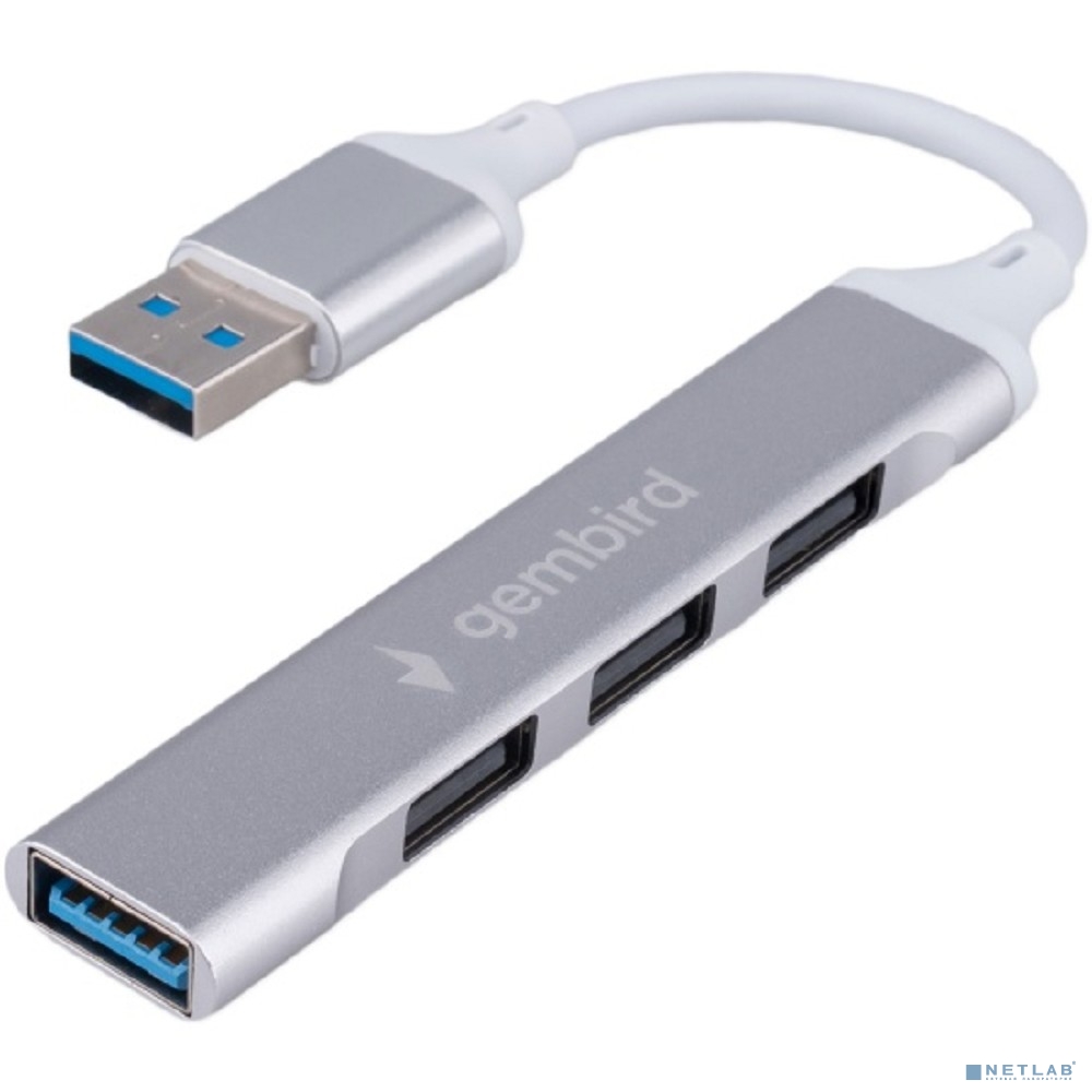 Gembird Разветвитель USB3.0/2.0, USB3.0, 3xUSB2.0, кабель USB 10см, серебристый металл, пакет (UHB-C206)