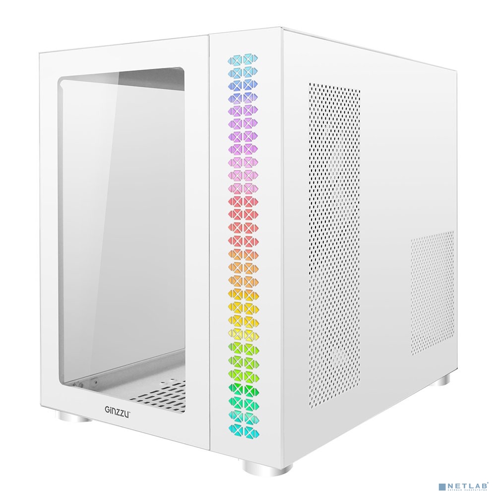 Ginzzu V560 RGB подсветка, закаленное стекло 1*USB 3.0,1*USB 2.0, AU Белый ATX