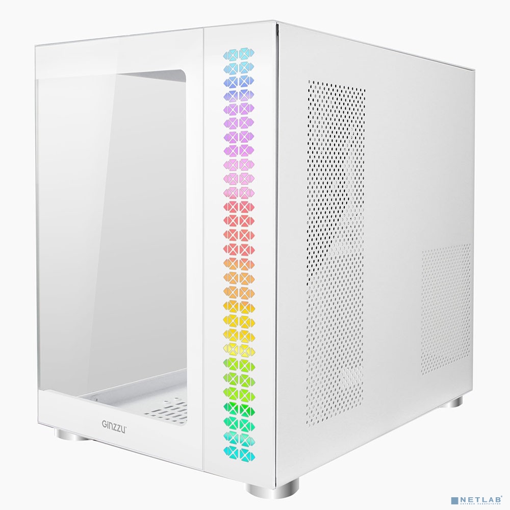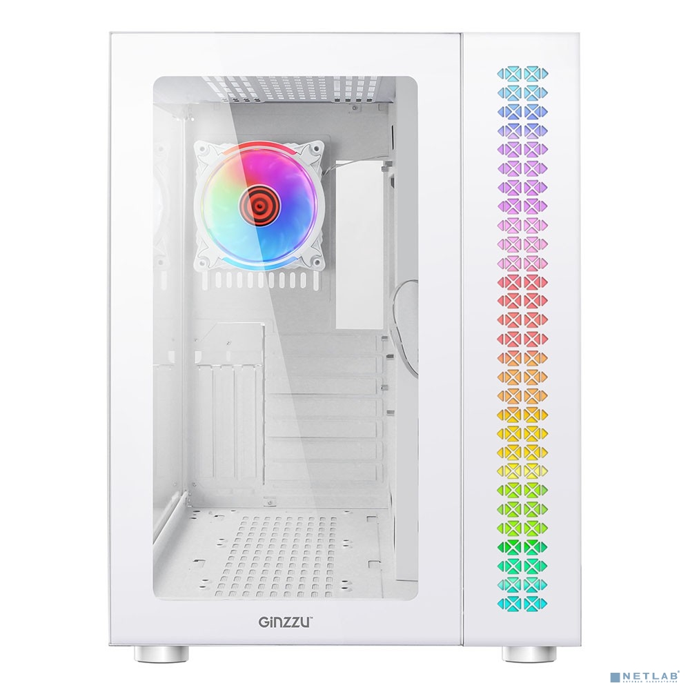 Ginzzu V570 RGB подсветка, контроллер CRC10, 4* 12RW6 FAN 12CM RGB, закаленное стекло 1*USB 3.0,1*USB 2.0, AU Белый ATX