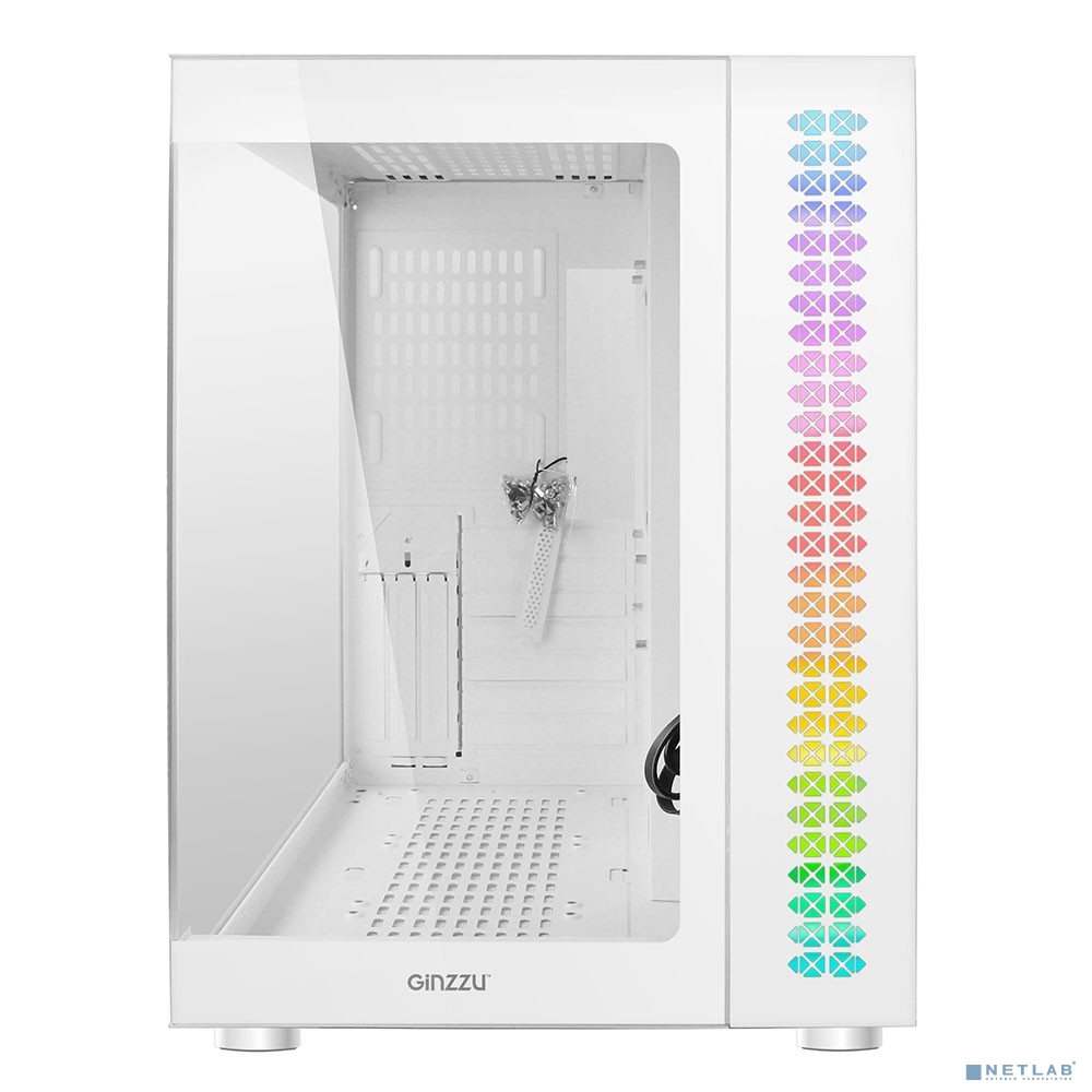 Ginzzu V580 RGB подсветка, закаленное стекло 1*USB 3.0,1*USB 2.0, AU Белый ATX