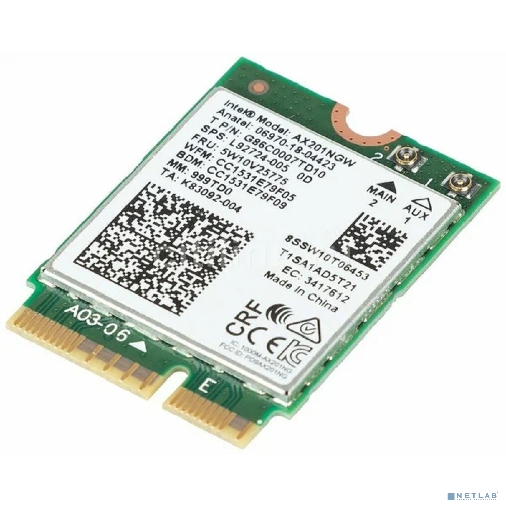 Intel® AX201.NGWG.NVW Wi-Fi 6 AX201, 2230, 2x2 AX+BT, No vPro®,999TD0 985855