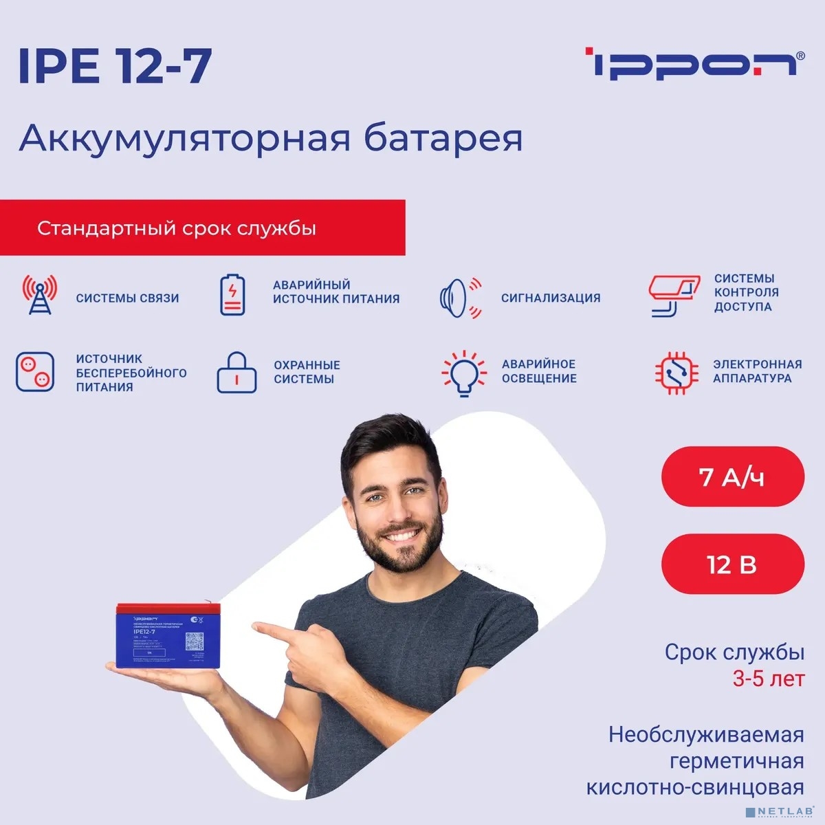 Ippon Батарея IPE12-7 12В 7Ач {2016359}
