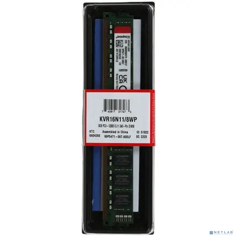 Kingston DDR3 DIMM 8GB (PC3-12800) 1600MHz KVR16N11/8WP