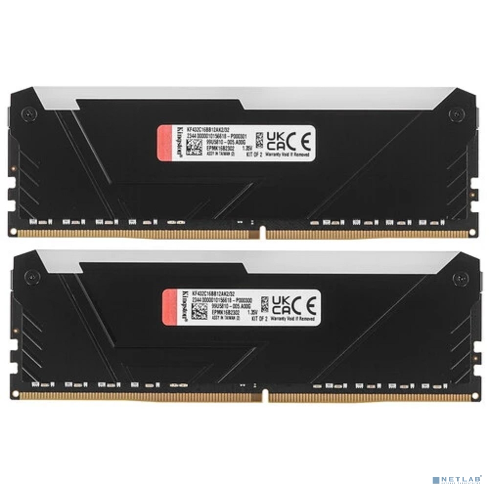 Kingston DDR4 DIMM 32GB Kit 2x16Gb KF432C16BB12AK2/32 PC4-25600, 3200MHz, CL16, RGB