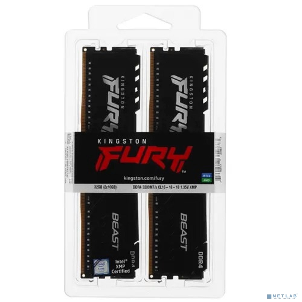 Kingston DDR4 DIMM 32GB Kit 2x16Gb KF432C16BB1K2/32 PC4-25600, 3200MHz, CL16