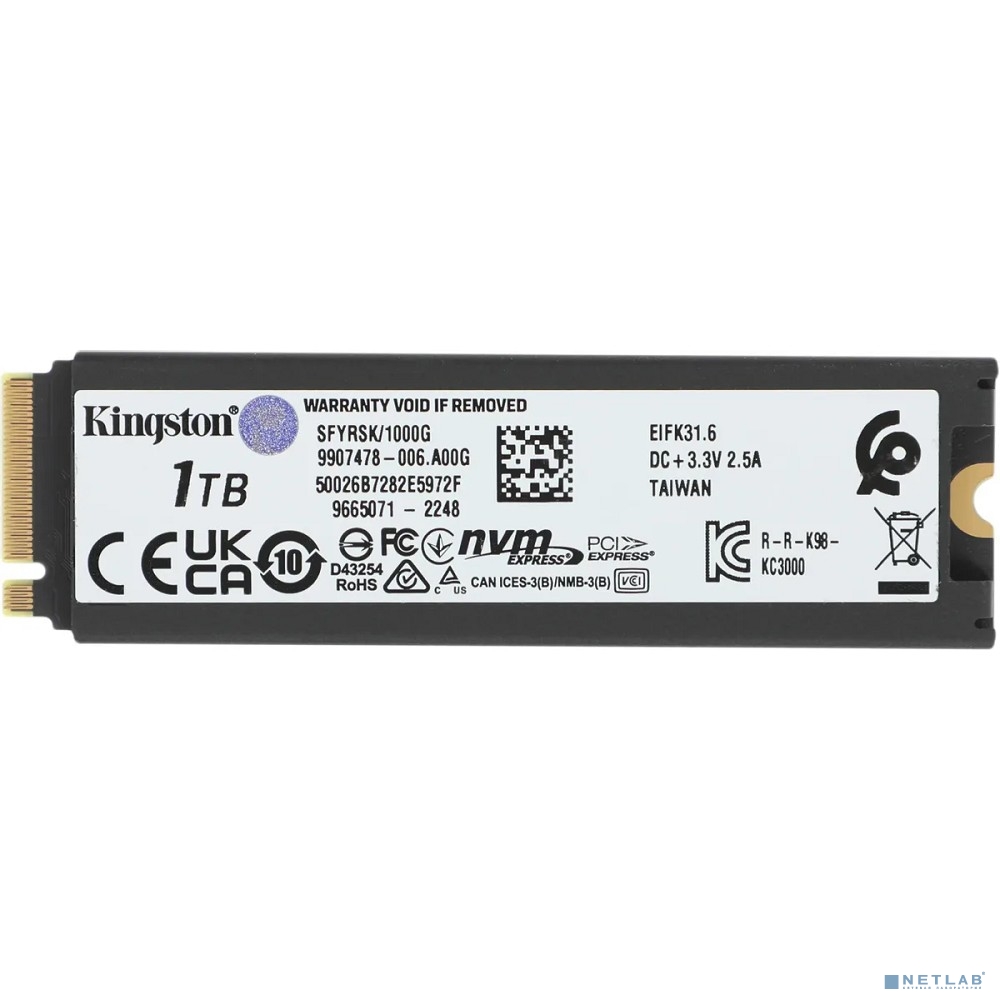 Kingston SSD Fury Renegade, 1000GB, M.2 22x80mm, NVMe, PCIe 4.0 x4, 3D TLC, SFYRSK/1000G