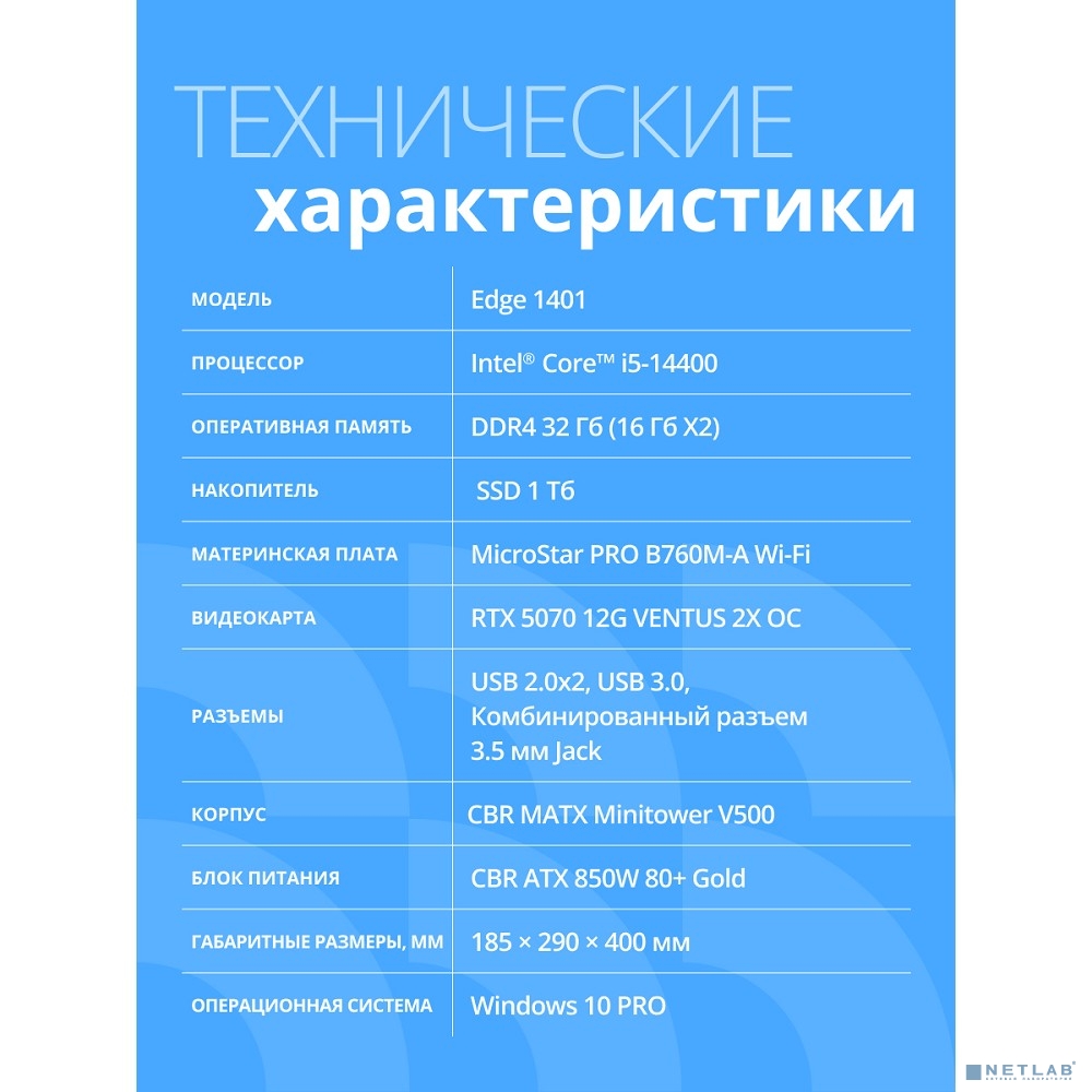 Компьютер CBR Edge E1401/W10 Intel Core i5-14400 / MicroStar PRO B760M-A WIFI / 32GB / SSD 1000GB / 10 Pro