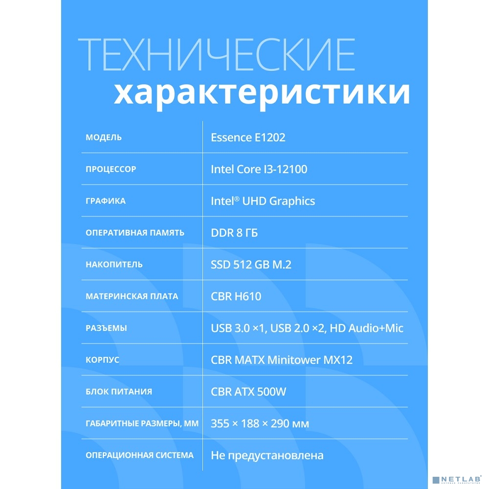 Компьютер CBR Essence E1202 Intel Core i3-12100 / Cbr MB-AFH610M-RTL / 8GB / SSD 512GB