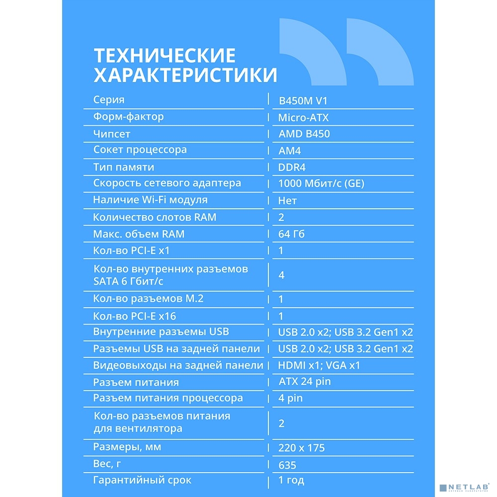 Материнская плата CBR B450M V1 {Socket AM4, 2*DDR4, mATX, VGA+HDMI, 1*PCIEx16/1*PCIEx1/1*M.2(NVME & SATA), 4*SATA3, 4*USB2+4*USB3, Glan}