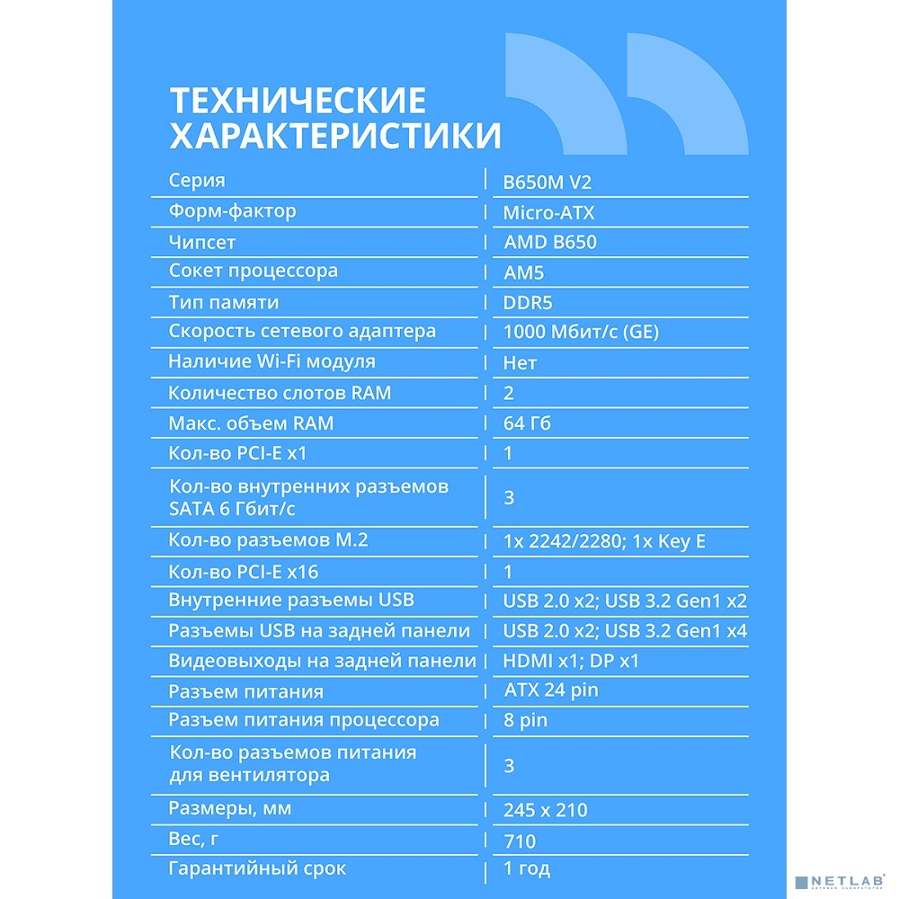 Материнская плата CBR B650M V2 { Chipset B650, Socket AM5, 2*DDR5, mATX, DP+HDMI, 1*PCIEx16,1*PCIEx1,1*M.2 NVME, 3*SATA3, 2*USB 2.0 + 4*USB3.2, LAN 1Gb}