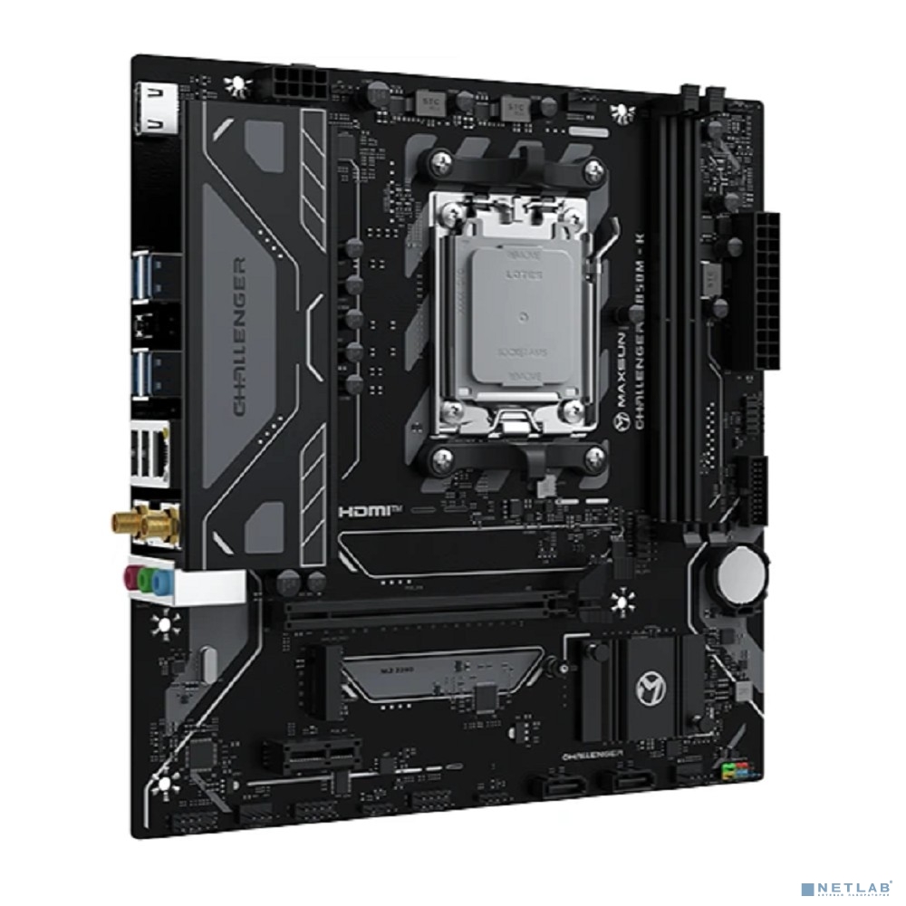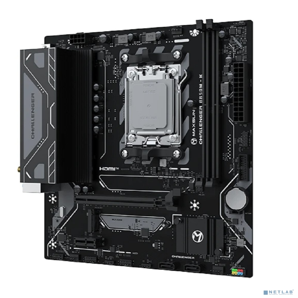 MAXSUN MS-Challenger B850M-K WIFI (Socket AM5, mATX, 2*DDR5 (96Gb), HDMI 1.4, 2*SATA3, 1*M.2, 1*PCIEx16/1*PCIEx1, 2*USB 2.0, 4*USB 3.2, LAN 1*1G, Wi-Fi 6, RTL)