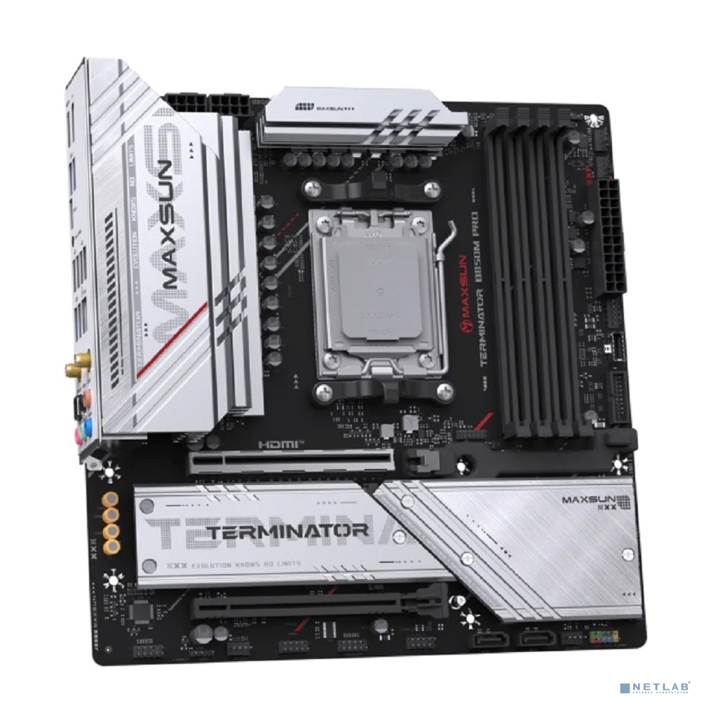 MAXSUN MS-Terminator B850M PRO WIFI (Socket AM5, mATX, 4*DDR5(192Gb), DP/HDMI, 2*SATA3, 3*M.2, 1*PCIEx16/1*PCIEx4, 1* Type-C, 4*USB 2.0, 4*USB 3.2, LAN 1*2.5G, SPDIF, WiFi 6E, RTL)