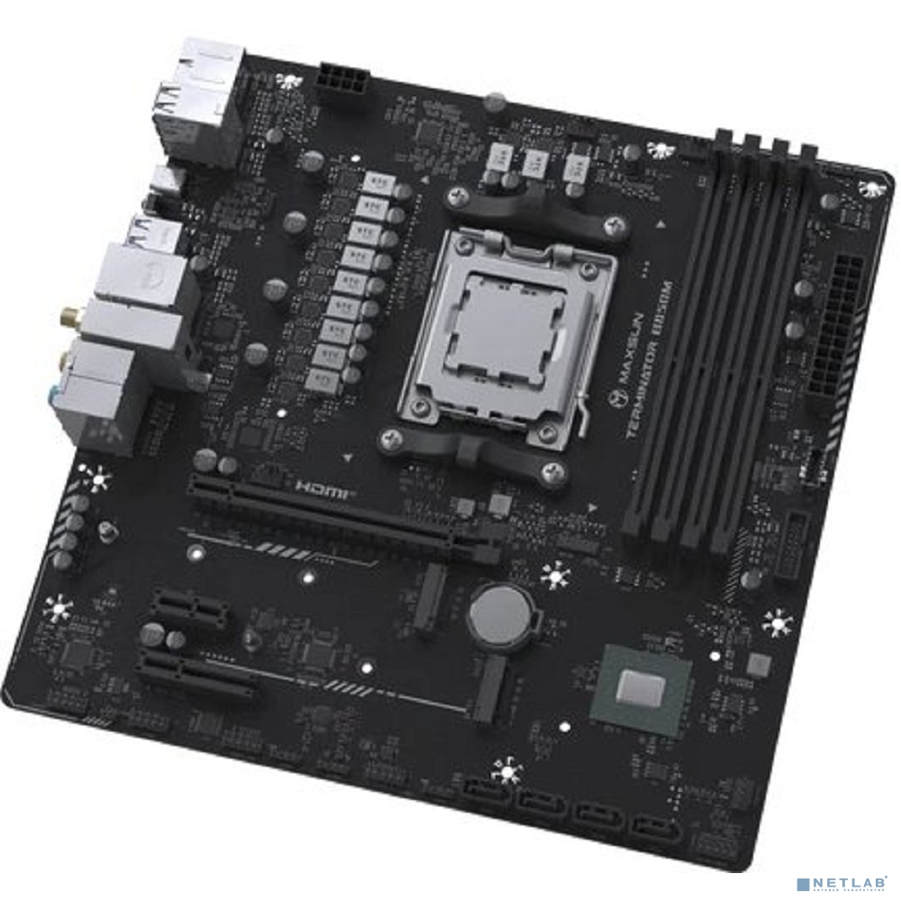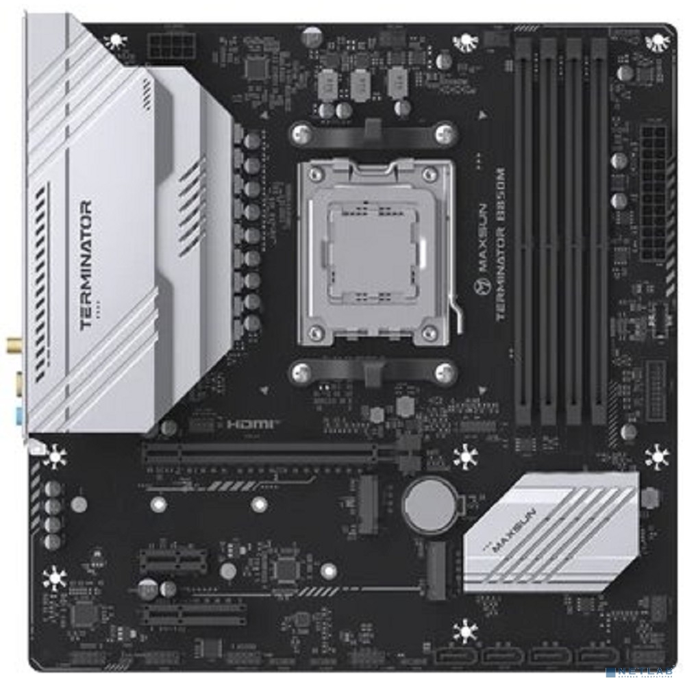 MAXSUN MS-Terminator B850M WIFI (Socket AM5, mATX, 4*DDR5(192Gb), DP/HDMI, 4*SATA3, 2*M.2, 1*PCIEx16/1*PCIEx4/1*PCIEx1, 4*USB2.0, 4*USB 3.0, 1*Type-C, LAN 1*2,5G, Bluetooth, Wi-Fi 802.11ax, RTL)