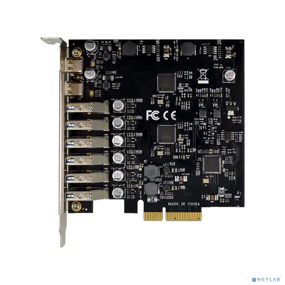 ORIENT AM-U3142PE-6A2C, Контроллер PCI-Ex4 v3.0, USB 3.2 Gen2, скорость до 10 Гбит/с, 8-port ext (6xType-A + 2xType-C), ASM3142+VL820-Q8 chipset, Self powered (33230)