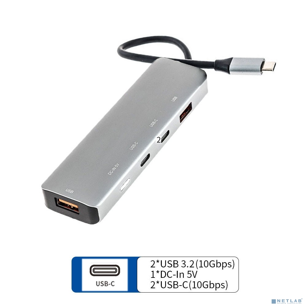 ORIENT CU-1041C, Type-C разветвитель USB 3.2 Gen2 (10 Гбит/c), порты: 2xUSB-A + 2xUSB-C, порт USB-C для доп.питания 5В, кабель USB Type-C, алюминиевый корпус, серебристый (33314)