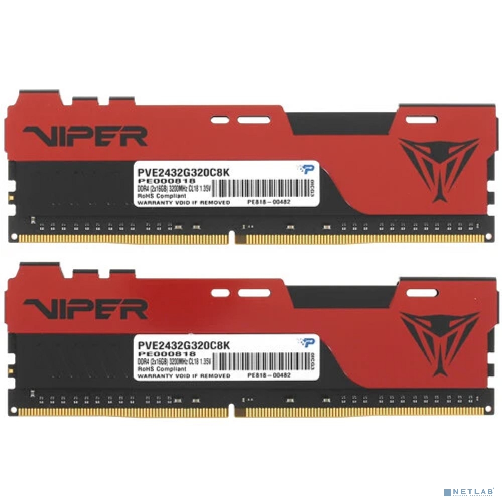 Память DDR4 2x16Gb 3200MHz Patriot PVE2432G320C8K RTL Gaming PC4-25600 CL18 DIMM 288-pin 1.35В kit