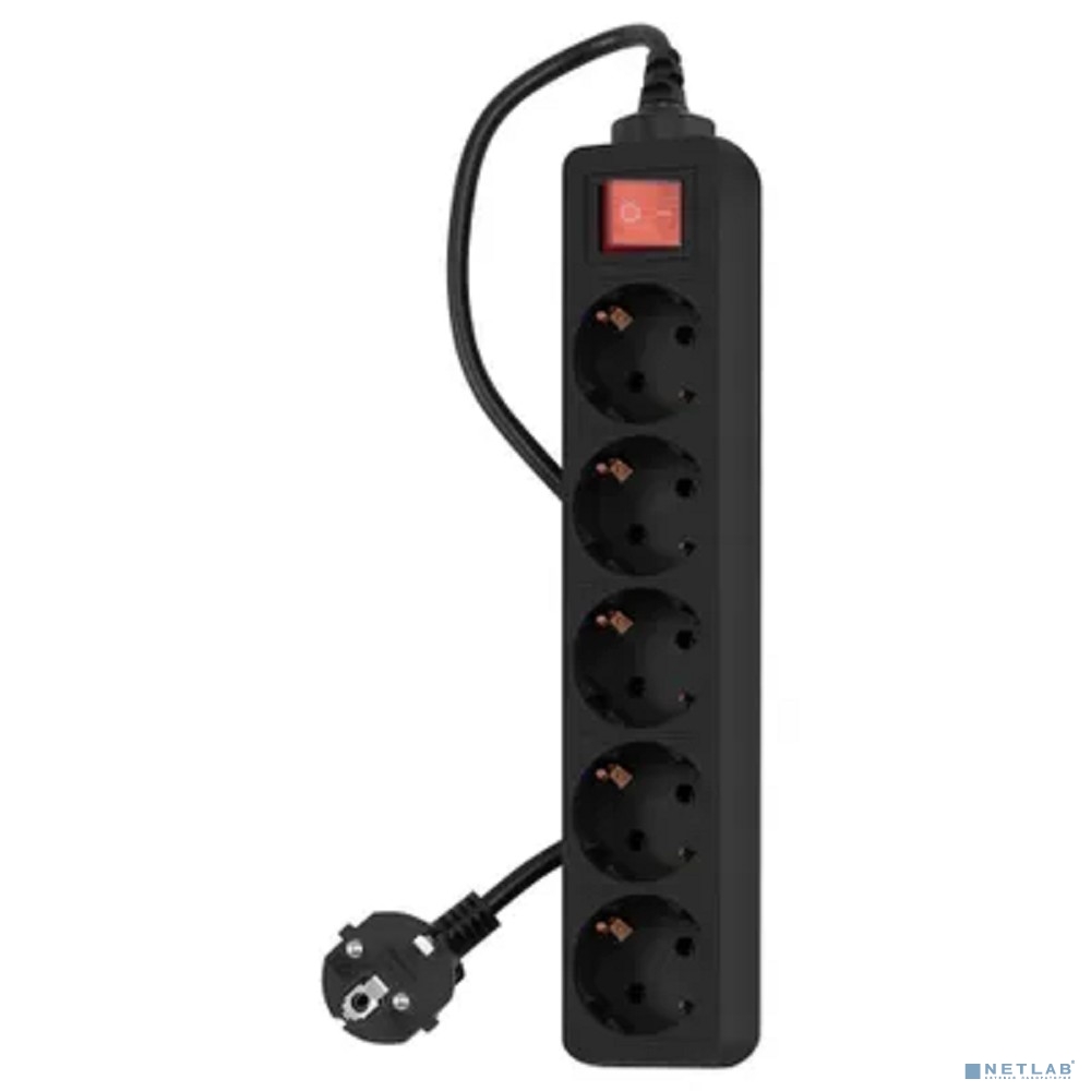 PC PET Сетевой фильтр AP01006-3-B 3м (5 розеток, EURO, EURO/RUS), черный