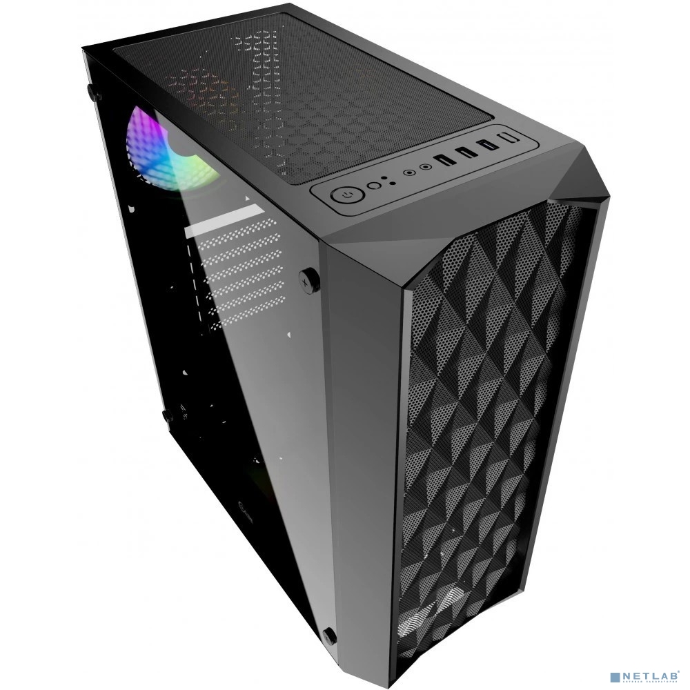 Powercase CMDM-L1 Корпус Diamond Mesh LED, Tempered Glass, 1x 120mm 5-color fan, чёрный, ATX (CMDM-L1)