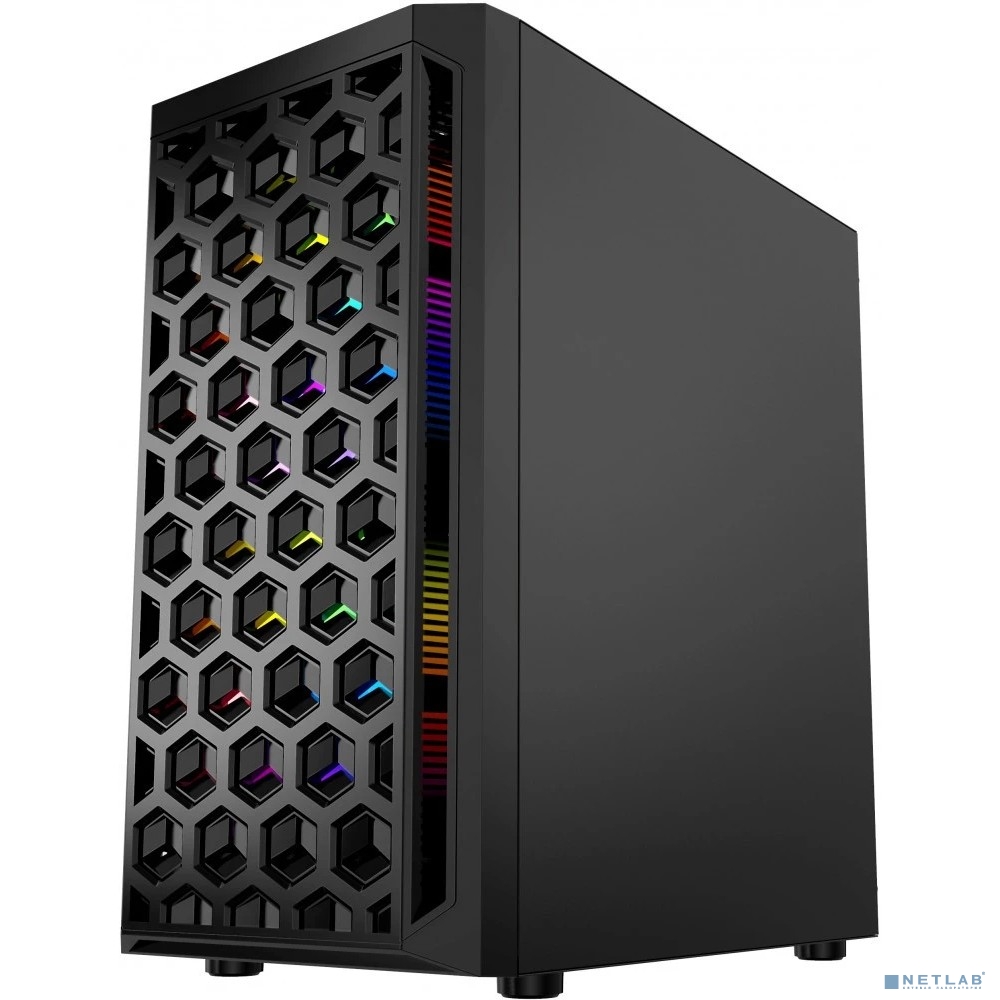Powercase CMIMTB-L3 Корпус Mistral Micro T3B, Tempered Glass, Mesh, 2x 140mm + 1х 120mm 5-color fan, чёрный, mATX (CMIMTB-L3)